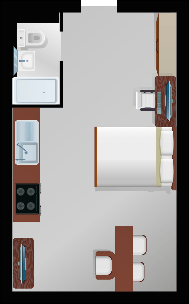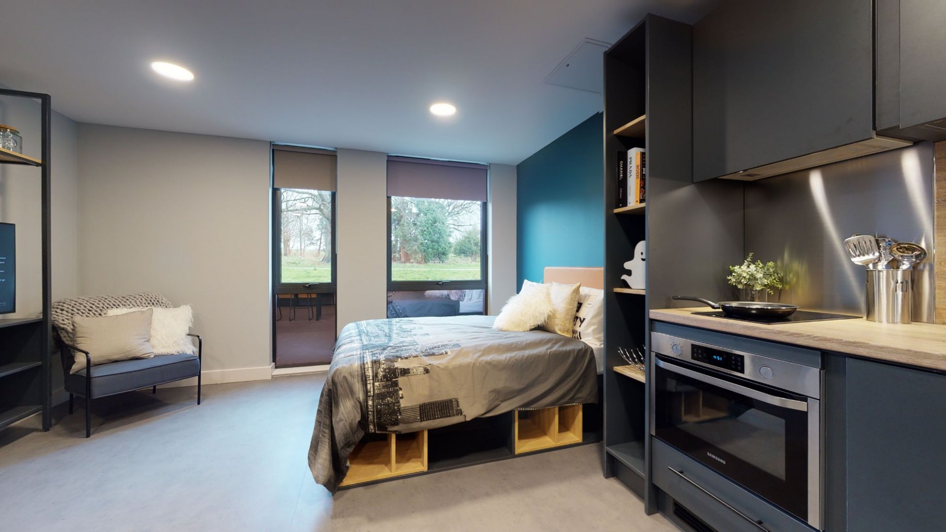 The incredible 29m2 Premium Studio is the perfect apartment for students looking for exceptional personal space, and all Premium Studios have views stretching right out across Stoke Park to the South-East. With top-spec air conditioning as standard and a Samsung TV in every studio, as well as sleek, modern furnishings and a large and comfortable bed, you will be delighted with your home away from home. All Premium Studios are equipped with your own kitchen, dining and lounge area, as well as a large study desk with chair and an ensuite bathroom.