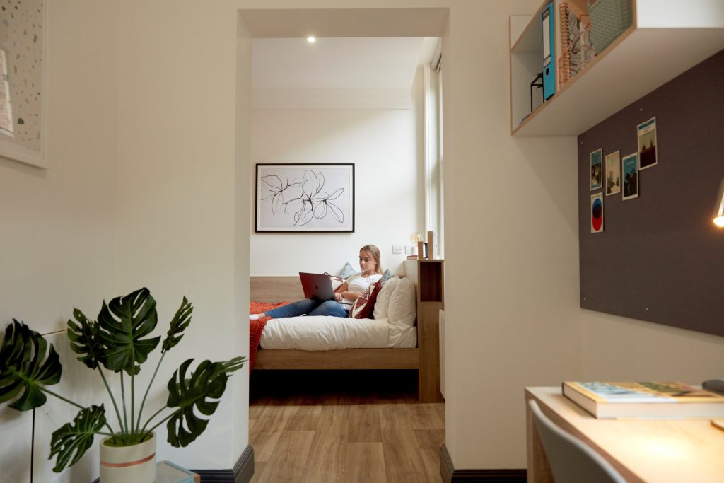 Choose from our array of Silver En Suite rooms, with the added choice of extra windows or incorporating distinctive historical features, offering a more distinctive living experience. These rooms are sized at 15.7sqm to 16.1sqm. It's essential to remember that at Eden, your rent comprehensively covers all expenses, including bills, gym access, and participation in social events.