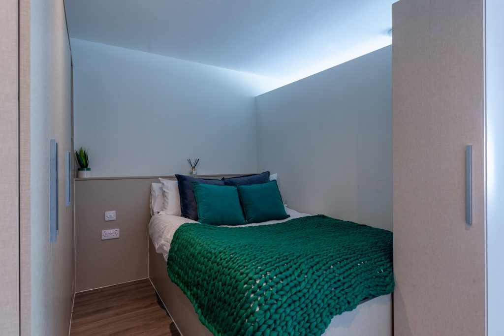 Your home away from home awaits with our Standard Studio option. Enjoy some privacy with your double bed, en suite bathroom and modern kitchen space featuring a breakfast bar and study desk and chair. When it comes to that all important chilled time you have your own sofa, or better yet head to our communal lounge equipped with swinging chairs and a bar area. You can enjoy independent living with a twist at Redvers Tower! Layouts may vary.